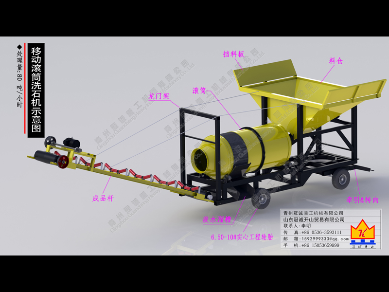 移動(dòng)滾筒洗石機(jī)價(jià)格低,洗石效率高,是一款實(shí)用型移動(dòng)式洗砂石設(shè)備,由青州冠誠重工機(jī)械有限公司生產(chǎn)研發(fā),該機(jī)械小巧緊湊,結(jié)構(gòu)簡單,轉(zhuǎn)場方便,維修故障低,使用壽命長。